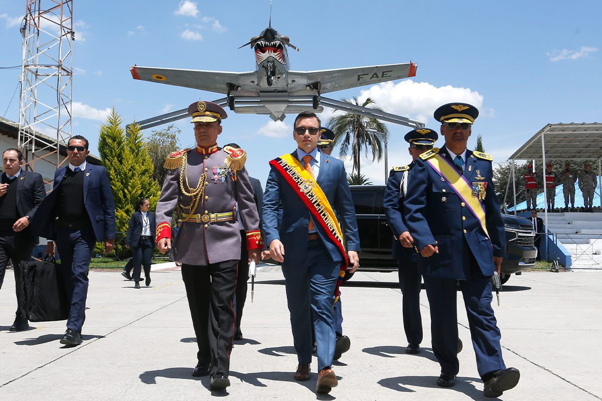 Dirigiéndose a los miembros de la Fuerza Aérea, el presidente afirmó que gracias a su accionar, el país pudo mantener la paz y no caer en manos de quienes buscan dividirlo. «Gracias por defender la democracia, por mantener la esperanza del Ecuador», expresó Noboa, resaltando el papel de los militares como garantes de la estabilidad del país.