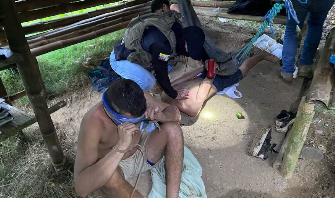 La persona secuestrada se encontraba en una choza, amarrada de pies y manos, con los ojos vendados, lo que confirmaba la gravedad de la situación. Durante la operación, las fuerzas militares detuvieron a dos adolescentes, de aproximadamente 16 y 17 años, quienes eran los presuntos responsables del secuestro. Ambos menores fueron puestos a disposición de las autoridades competentes para su respectiva judicialización.