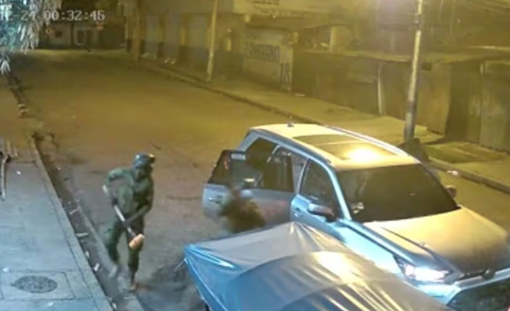 En las imágenes difundidas, se observa cómo uno de los individuos grita desde fuera de la casa pidiendo que abran la puerta, alegando que son miembros del Ejército. Poco después, se escuchan varias detonaciones y uno de los atacantes se baja del vehículo con un combo, una herramienta utilizada para derribar puertas durante allanamientos.