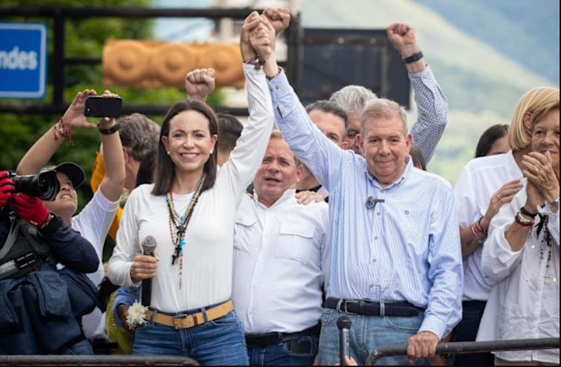 “Hace un año, Nicolás Maduro fue políticamente derrotado. Y en 2024, vamos a consagrar esa victoria con los votos del pueblo”, afirmó Machado ante simpatizantes.